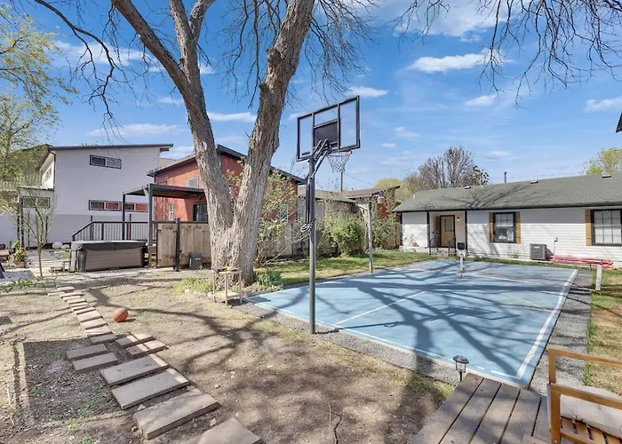 The Luxury 3 House Compound With Jacuzzi And Pickleball is an exquisite retreat located just a short drive from the vibrant heart of Austin. Nestled 7 km from the charming Zilker Zephyr Miniature train, this compound offers a perfect blend of leisure and luxury for families and groups seeking an unforgettable getaway. Here, guests can unwind in a serene setting while enjoying the richness of Austin's cultural offerings nearby.